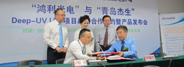 【高工LED专稿】 【高工LED记者 龙宗慧】6月10日,鸿利光电与青岛杰生在广州达成战略合作协议,双方未来将共同开发深紫外UV-LED(波长在260-320nm